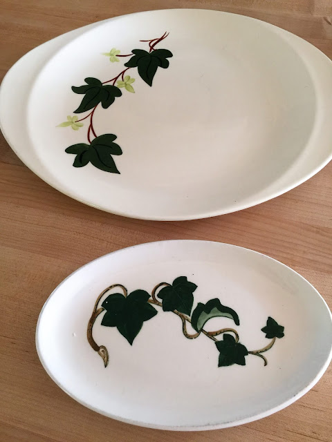 On the way home, we stopped at an antique shop we like. Being downsized I try not to buy much these days but I couldn't resist these four M.A. Hadley Berry plates. I've collected M.A. Hadley since I worked part-time at the Yankee Peddler Country Store in Connecticut when my kids were little. They sold her hand painted pottery and I coveted it. I couldn't afford even one piece then so now I can't help treating myself to it once in awhile.